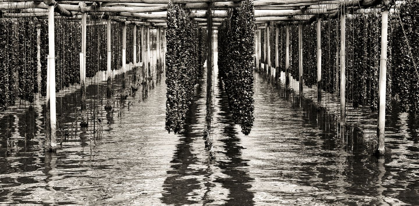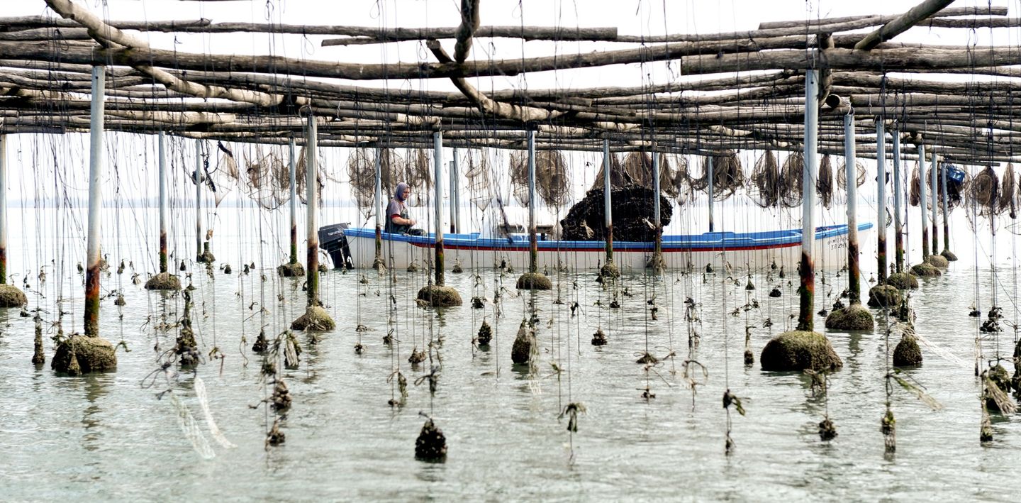 Η καλλιέργεια ξεκινά με τη συλλογή του γόνου που προσκολλάται σε ειδικά σχοινιά, τους γονοσυλλέκτες.